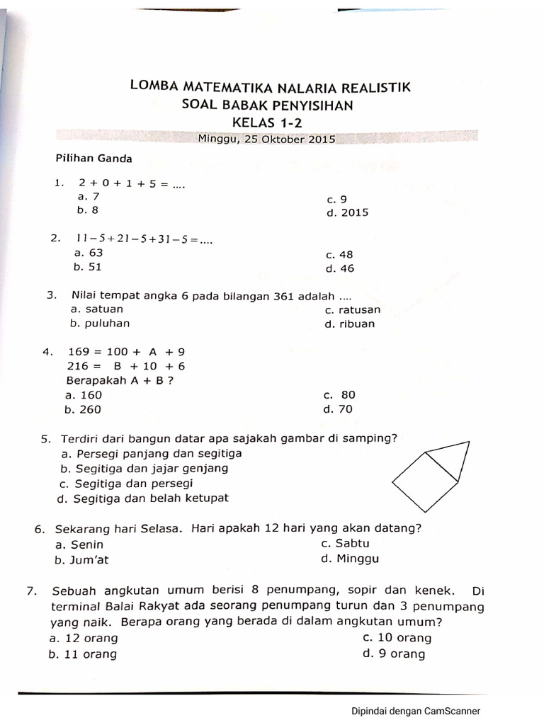 Artikel ini akan menyajikan berbagai contoh soal matematika nalaria yang dirancang khusus untuk siswa kelas 2 SD, beserta penjelasan mendalam tentang konsep yang diuji, strategi penyelesaiannya, dan mengapa soal-soal ini penting untuk pengembangan kemampuan berpikir anak.